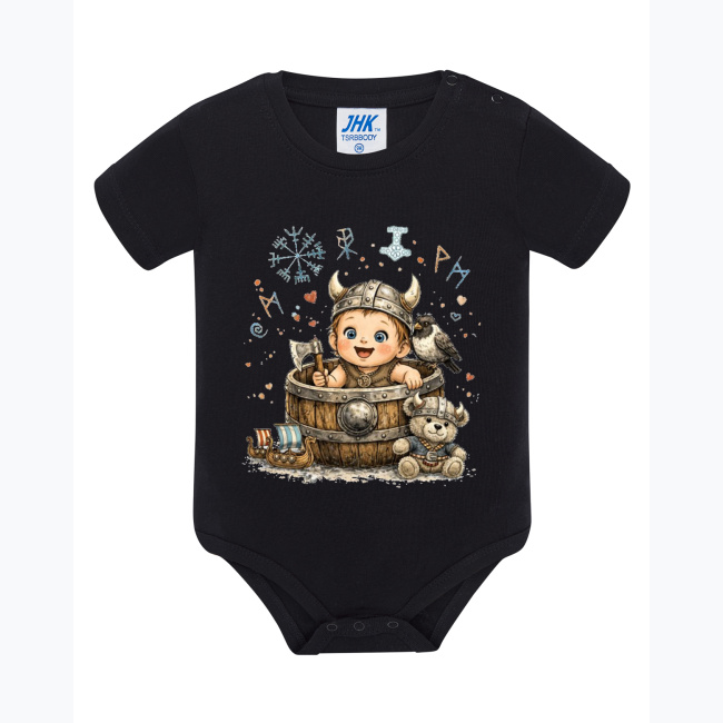 To słodki i wyjątkowy wzór dla najmłodszych wojowników i wojowniczek — idealny dla rodziców kochających nordycką stylistykę i odrobinę humoru.