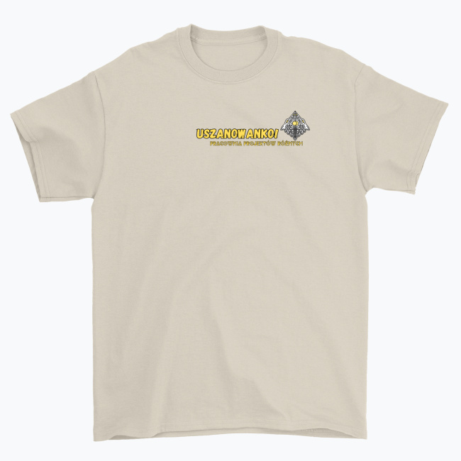 Koszulka z połączonym logotypem Hati and Sköll oraz Pracowni Projektów Różnych oddaje charakter dwóch stron tej samej twórczej natury — surową siłę kuźni oraz różnorodność rzemiosła, które powstaje z pasji i pracy rąk.