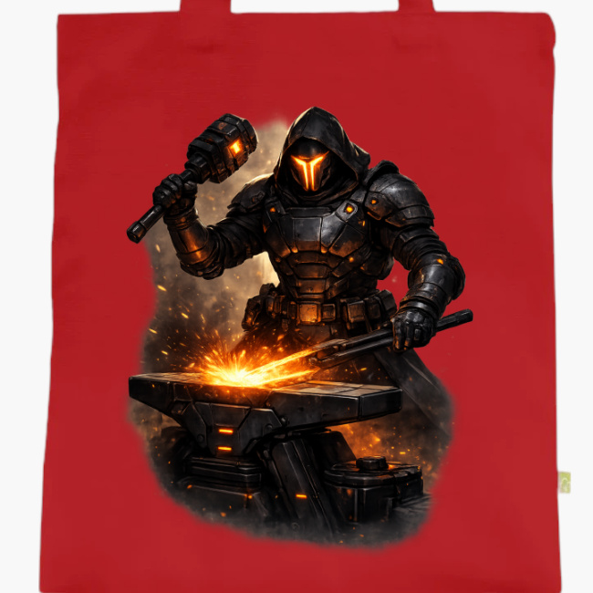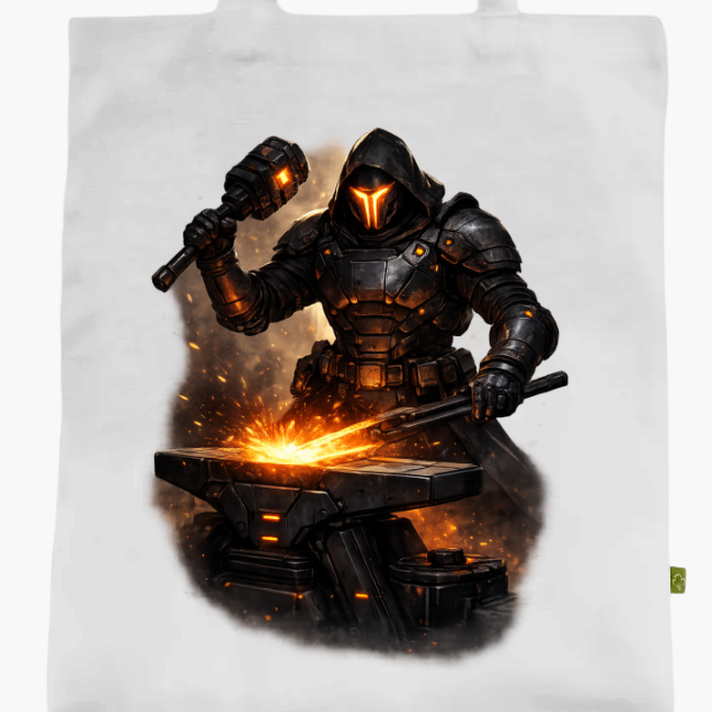 Grafika przedstawia galaktycznego kowala w futurystycznym, pancerzowym stylu, otoczonego energią i żarem bijącym z kowadła. Motyw łączy klasyczne rzemiosło z klimatem science-fiction, tworząc wyjątkowy i dynamiczny wzór dla fanów kowalstwa, technologii i kosmicznych światów. Idealnie sprawdzi się na koszulkach, kubkach, bluzach, torbach oraz innych gadżetach. Projekt inspirowany stylistyką znaną z opowieści o odległych galaktykach, ale w pełni oryginalny i autorski.