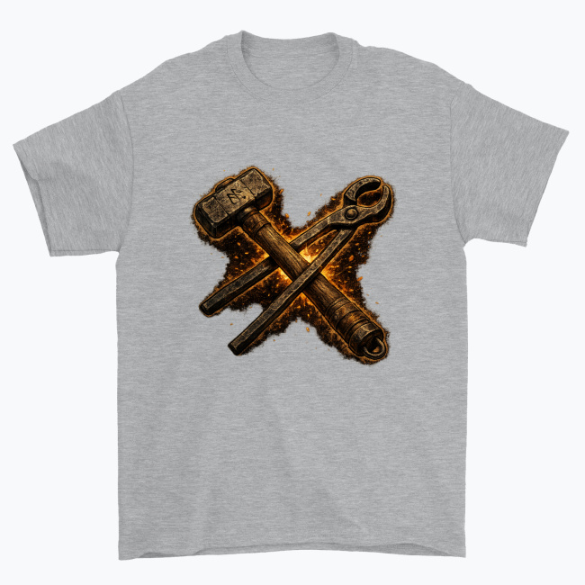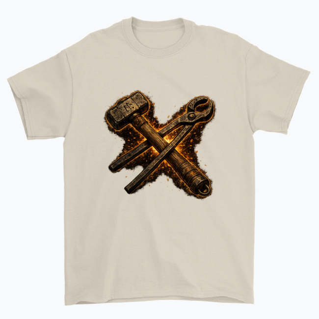 Minimalistyczny, rysowany motyw przedstawiający skrzyżowane narzędzia kowala — młotek i kleszcze. Idealny wybór dla każdego kowala, majsterkowicza i fana rzemiosła, który lubi wyrazić swoją pasję w prosty, symboliczny sposób. Gramatura 203 g/m² | Klasyczny krój | 100% bawełna amerykańska Właściwa pielęgnacja: Tylko właściwa pielęgnacja może zapewnić długotrwałą jakość. Prać ręcznie lub w pralce w niskiej temperaturze,…