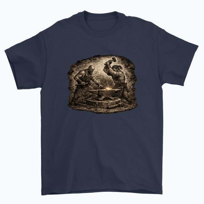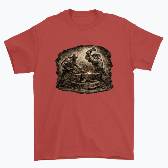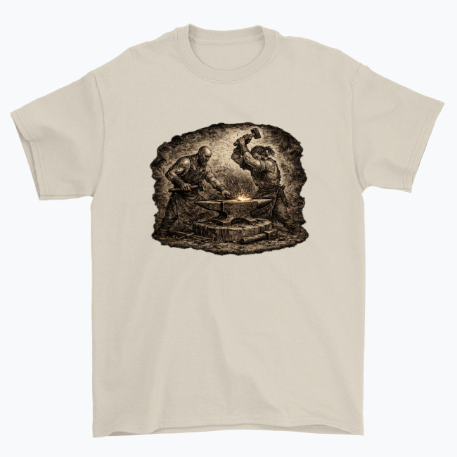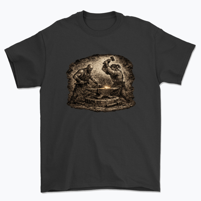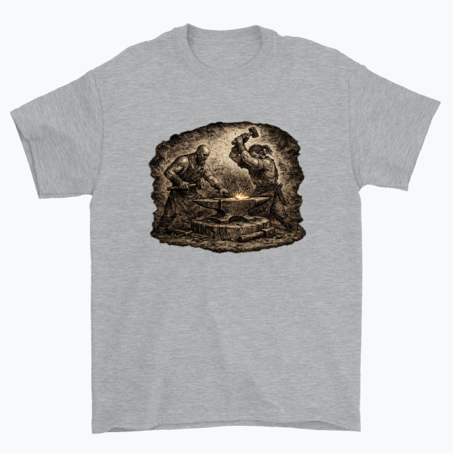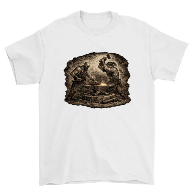 To idealny wzór dla tych, którzy żyją kowalstwem, kochają zapach rozgrzanego metalu, rekonstrukcje historyczne albo po prostu cenią charakter i moc rzemiosła. Świetnie prezentuje się na koszulkach, kubkach, bluzach i innych gadżetach — nadając im wyrazisty, ognisty klimat kuźni.
